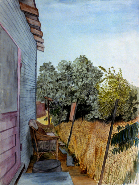Backyard, 1939. Watercolor on paper, 22 x 15 inches. Unlocated