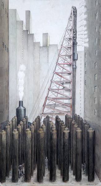Pile Driving, 1945. Watercolor and graphite on paper, 215/8 x 12 inches. Michael Rosenfeld Gallery, New York