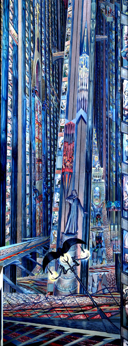 Big City, 1949. Watercolor and graphite on paper, 80 x 29.5 inches. Collection of Morelle and Norman Levine