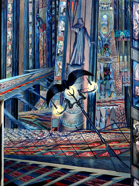 Big City, 1949 (lower half detail). Watercolor and graphite on paper, 80 x 29.5 inches. Collection of Morelle and Norman Levine