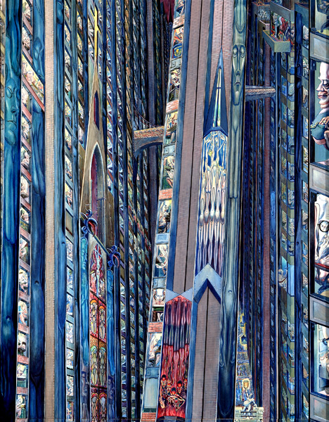 Big City (upper half), 1949. Watercolor and graphite on paper, 80 x 29.5 inches. Collection of Morelle and Norman Levine