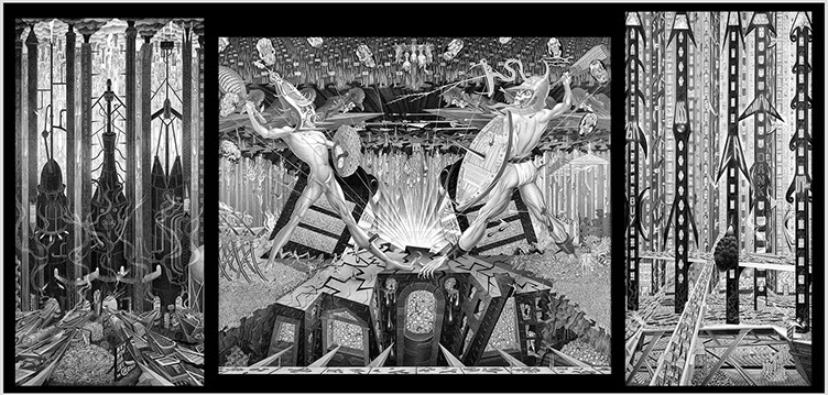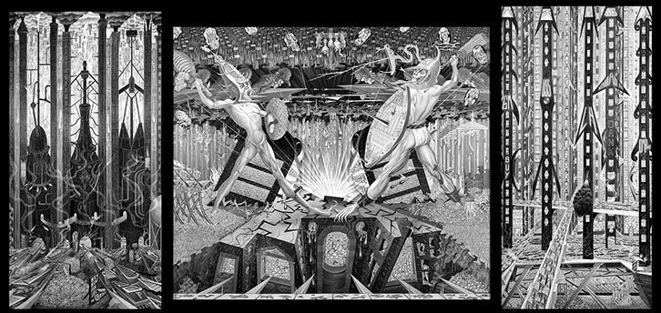 War and Peace - 1965, graphite on paper, 58 1/4 x 59, 51 59,58 1/4 x 59 inches