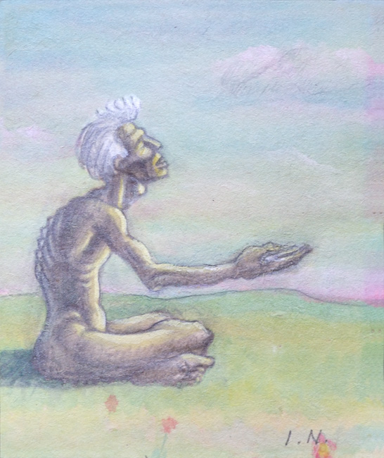 Begging Man, ca1939-40. Graphite and color pencil on paper, 4 x 3.25 inches. Collection of John Carr and Mary Rose Roach