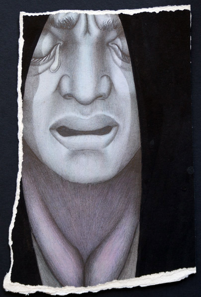 Torn Face (original title unknown), ca1940. Graphite and color pencil, 5 x 4 inches. Collection of John W. Carr and Mary Rose Roach