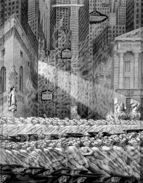 The City (city rush), ca1941. Graphite on paper, 30 x 24 inches. Collection of Janice and Maurice Holloway