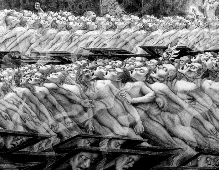 The City (detail), ca1941. Graphite on paper, 30 x 24 inches. Collection of Janice and Maurice Holloway