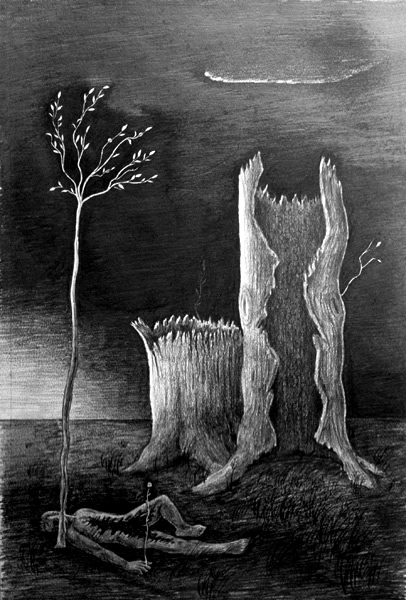Hollow Tree (original title unknown), ca1941. Graphite on paper, no size given. Unlocated
