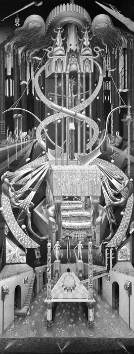 My World and Yours, 1954. Graphite on paper, 74 x 28 inches. Collection of Morelle and Norman Levine