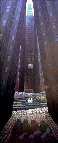 Intersection, 1949. Oil on canvas, 40 x 22 inches. Collection of Angela Bohlen