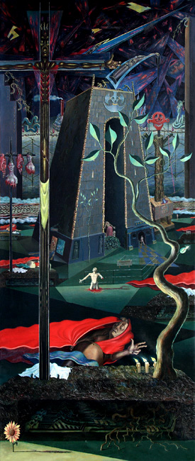 The Cemetery, 1950. Oil on canvas, 72.25 x 29.5 inches. Collection of Eleanor Dickenson
