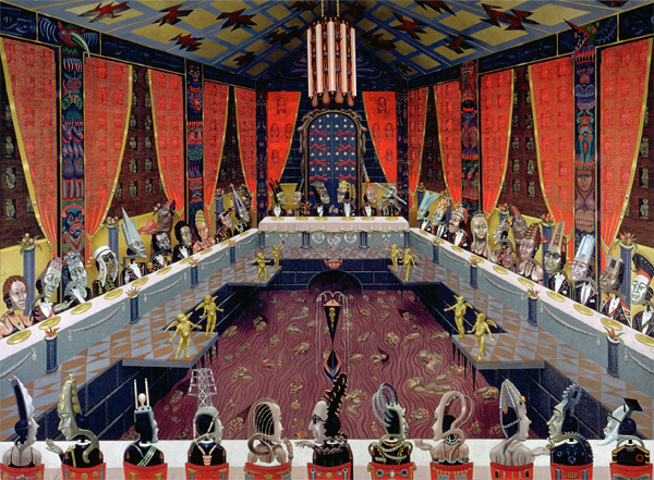 The Banquet, 1972. Oil on canvas, 90 x 120 inches. Collection of the San Jose State University Student Union