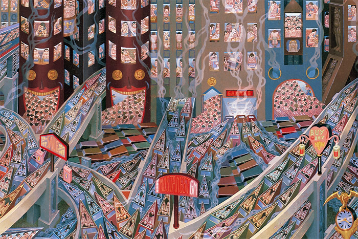 Awakening of the City (detail), 1984. Oil on canvas, 120 x 78 inches. Collection of the San Jose Museum of Art, gift of Hela Norman with the additional support from the Museum's Collection Committee, in honor of the San Jose Museum of Art's 35th anniversary. |