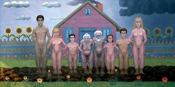 Rural Family, 1986. Oil on canvas, 36 x 72 inches. Collection of the Crocker Art Museum, Hela Norman Charitable Remainder Unitrust