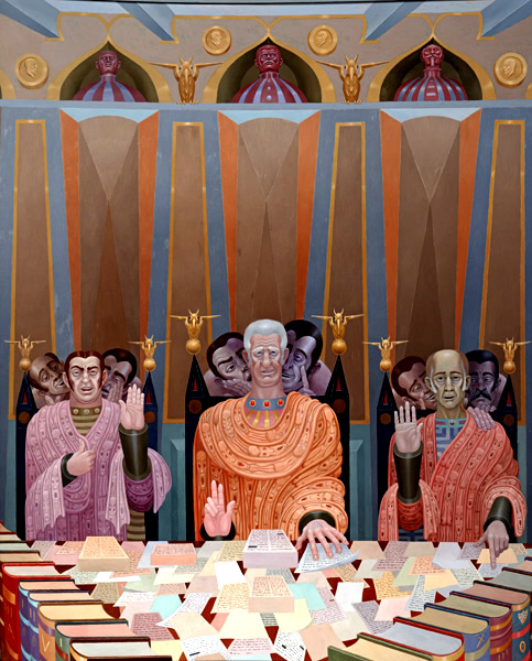 The Law Makers (Legislators), 1987. Oil on canvas, 90 x 72 inches. Collection of the Crocker Art Museum, Hela Norman Charitable Remainder Unitrust