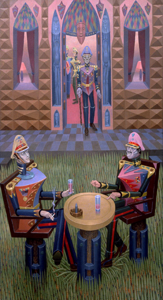 Teaching the Young, 1987. Oil on canvas, 74 x 40 inches. Collection of Mark Senn