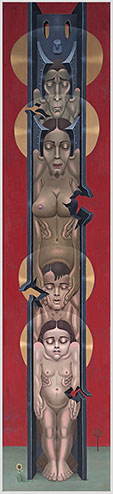 Totem of a Holy Family - 1974, 90 x 20 inches